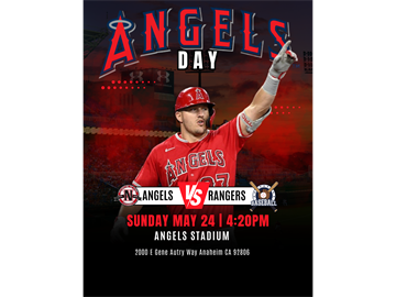 Join us for an afternoon of baseball as the Los Angeles Angels take on the Texas Rangers at Angel Stadium.